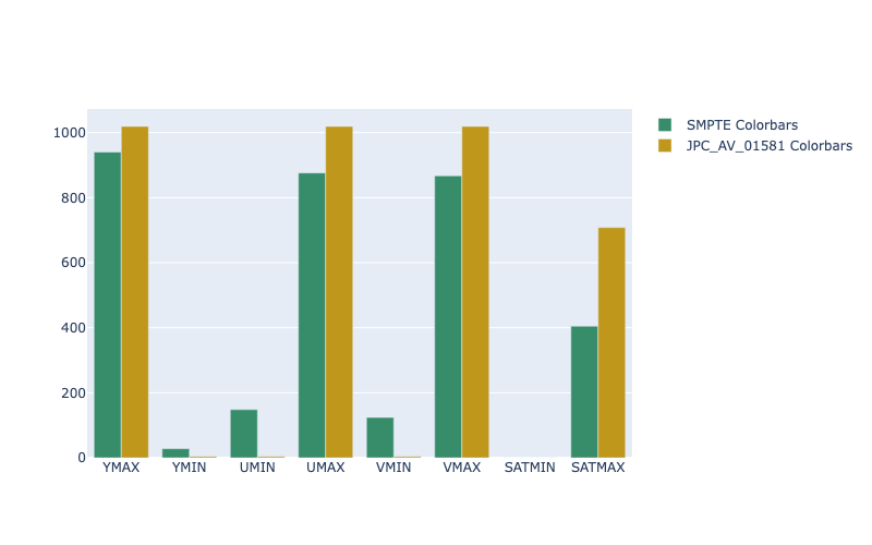 AV Spex creates an HTML report that compares the QCTools values of the input video’s color bars with the QCTools values of SMPTE color bars.